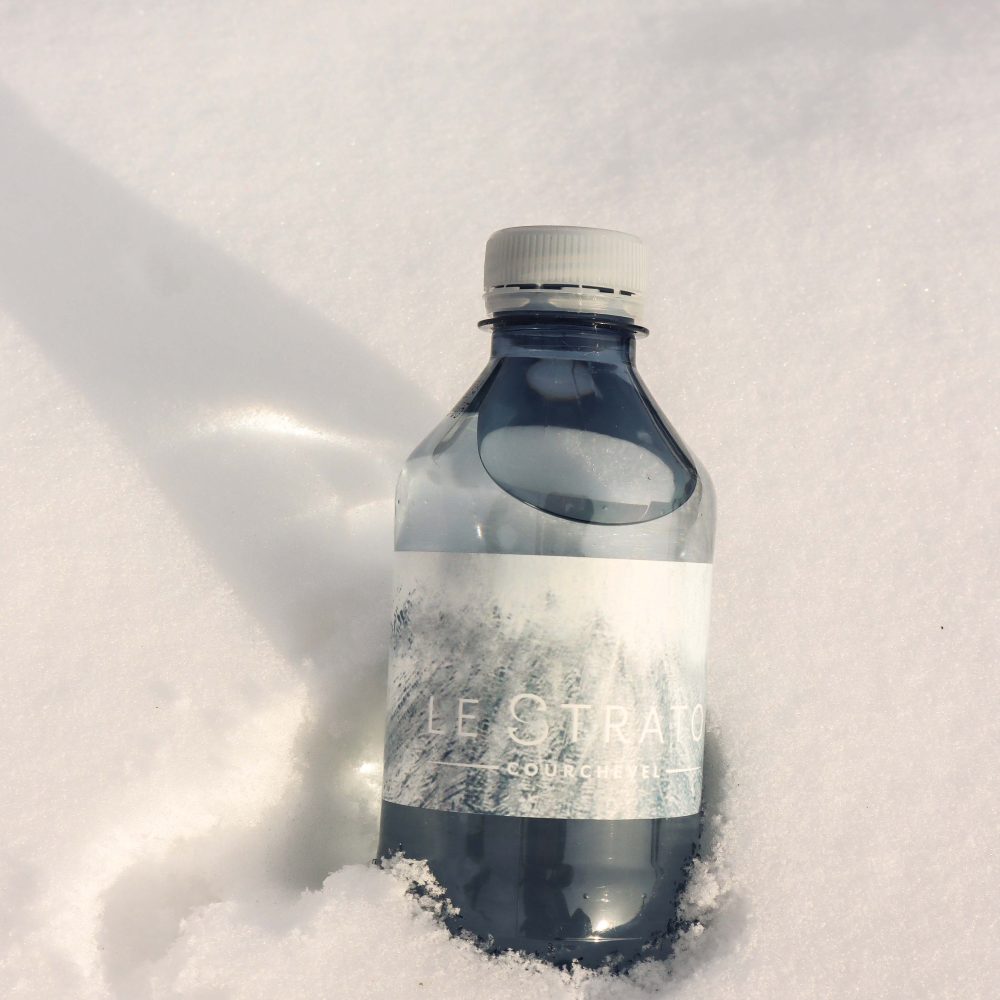 NOUS PROPOSONS DES BOUTEILLES D’EAU UNIQUEMENT EN PLASTIQUE RPET OU EN VERRE.